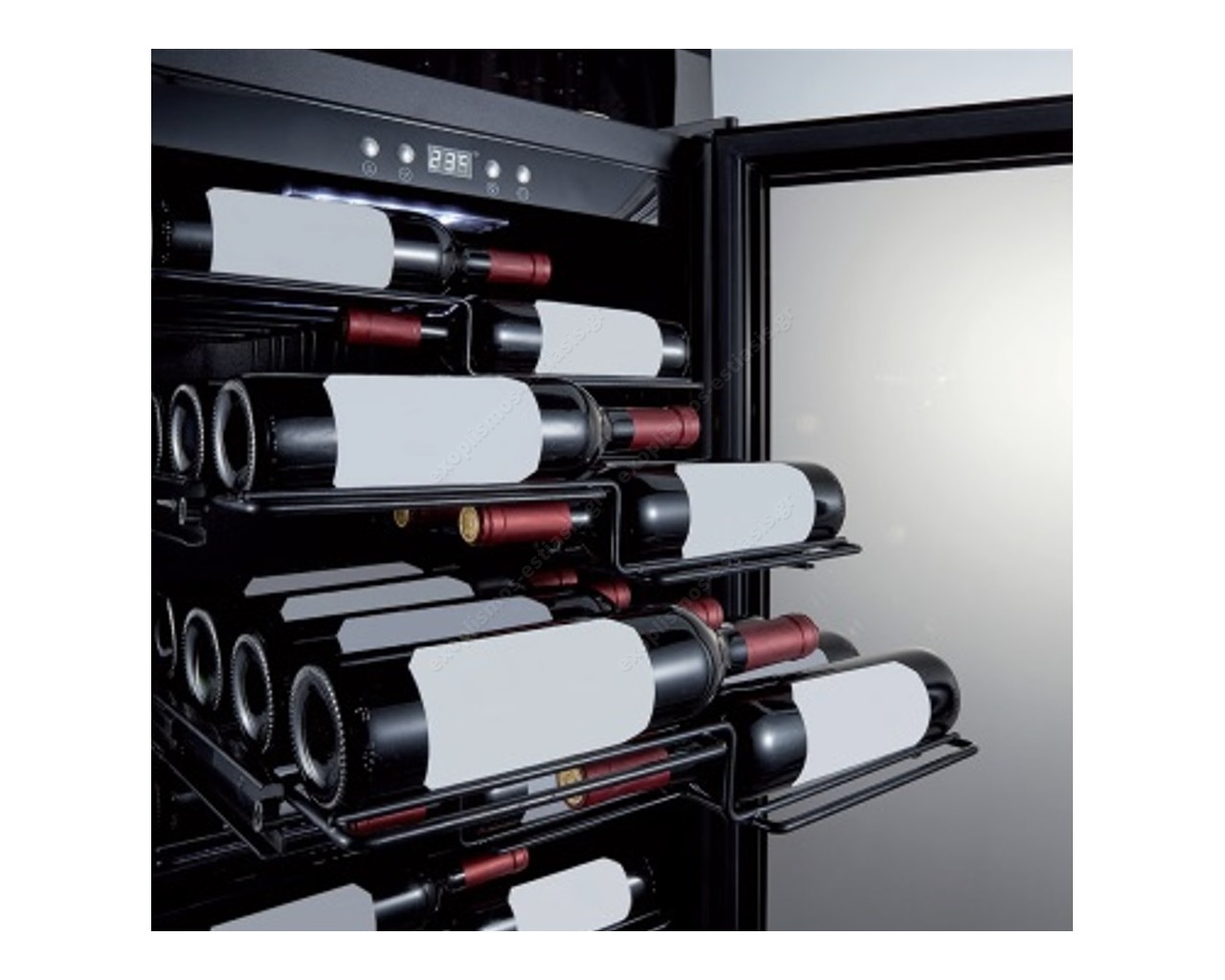 - Sommelier 482 FG: Με εξ' ολοκλήρου κρυστάλλινη πόρτα και μαύρο εξωτερικό χερούλι, 2 ζώνες θερμοκρασίας: +5/+20°C, χωρητικότητα: 450Lt / 163 φιάλες Ø7,5cm, με 7 συρόμενα ράφια 50,3x53εκ και 1 ξύλινο ράφι 50,3x42εκ, διαστάσεις 59,5x68x184εκ