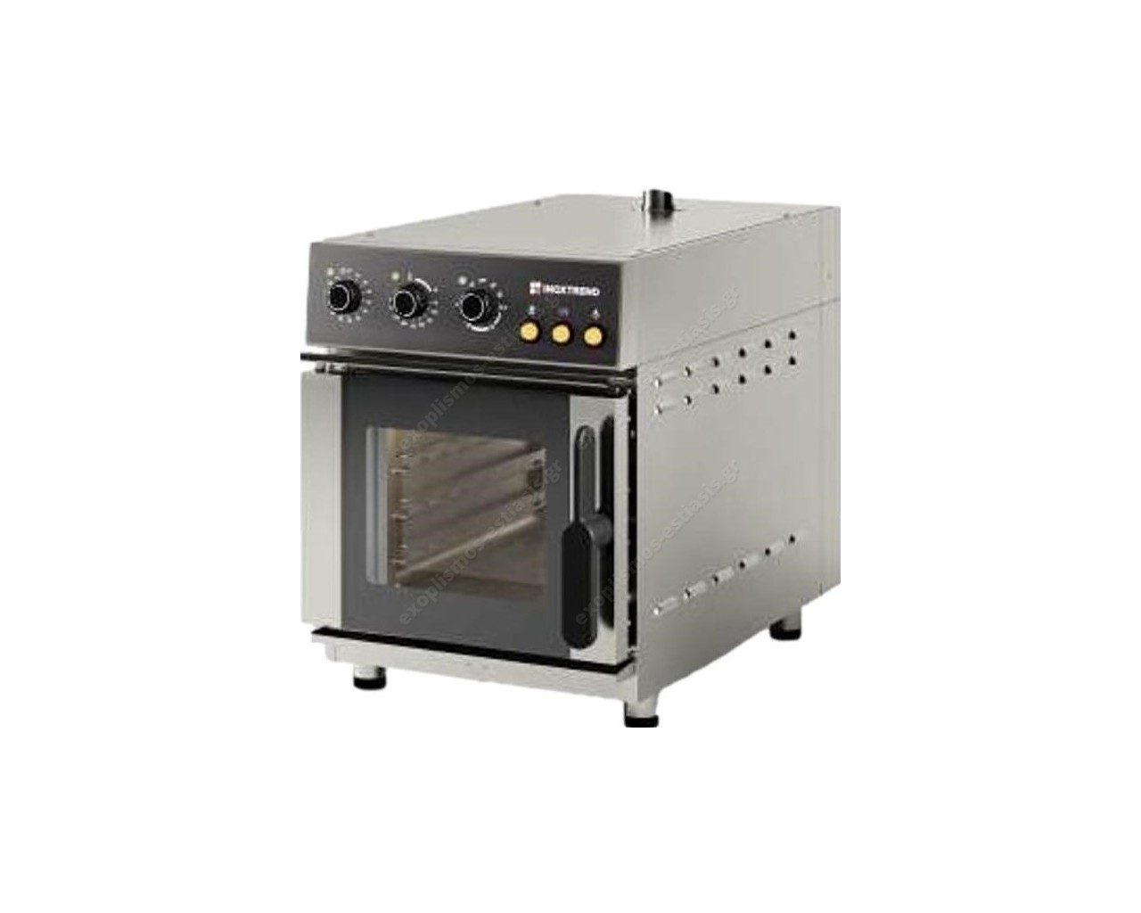 Ηλεκτρικός φούρνος εστιατορίου για 4 ταψιά GN 1/1 Compact INOXTREND. Το μήκος είναι 52εκ (!), κατάλληλο για κουζίνες με περιορισμένο χώρο αλλά με υψηλές απαιτήσεις.