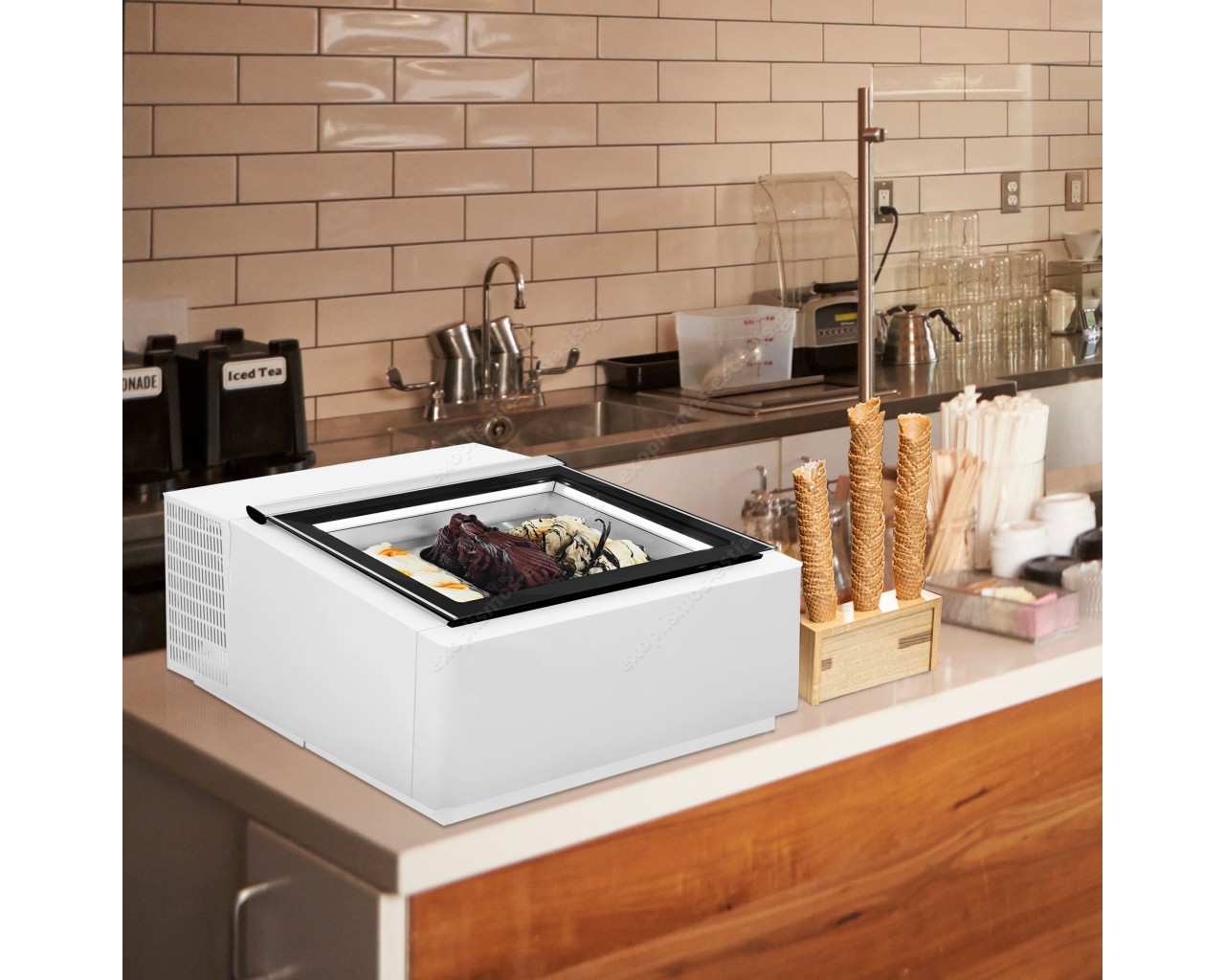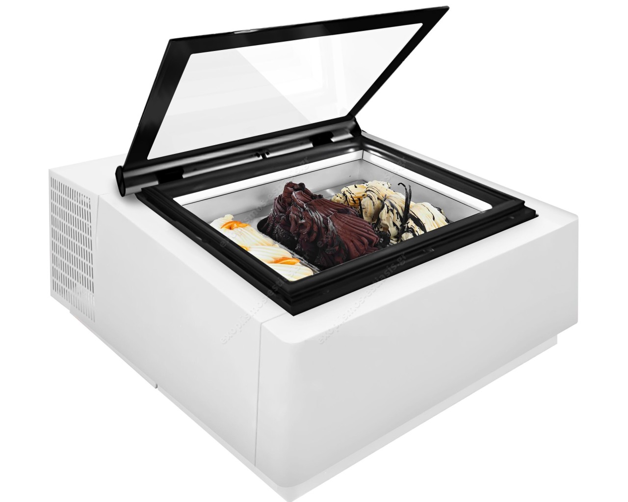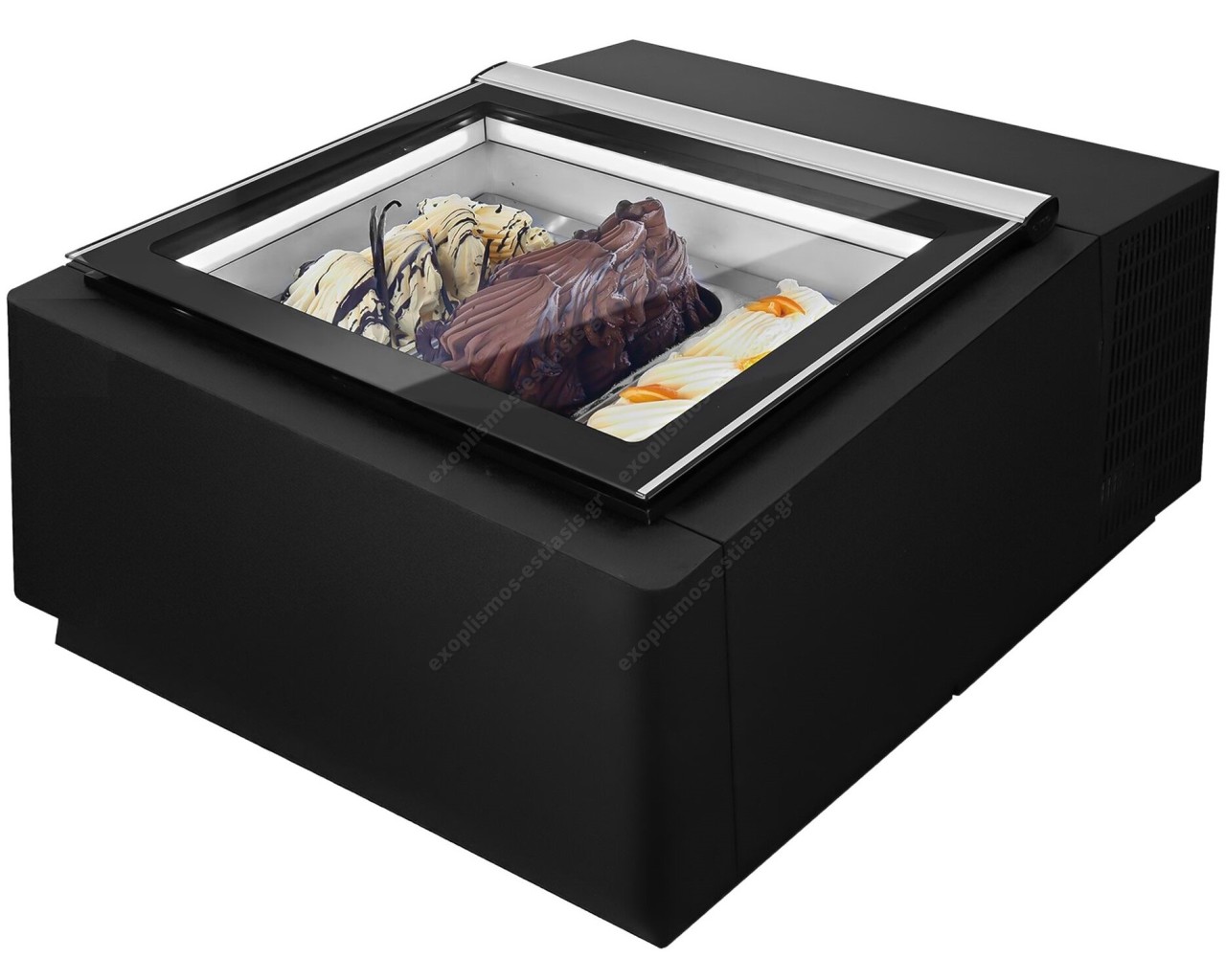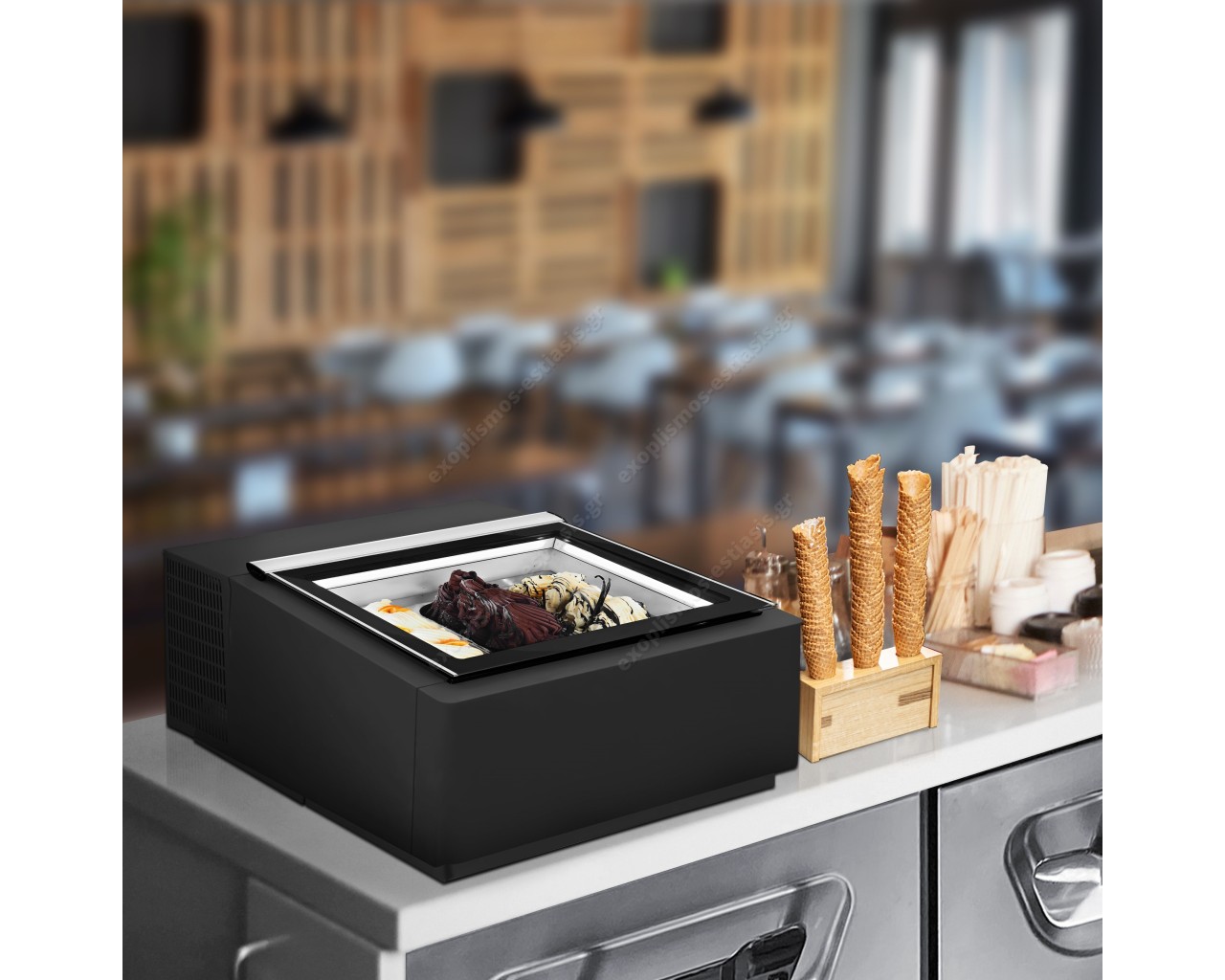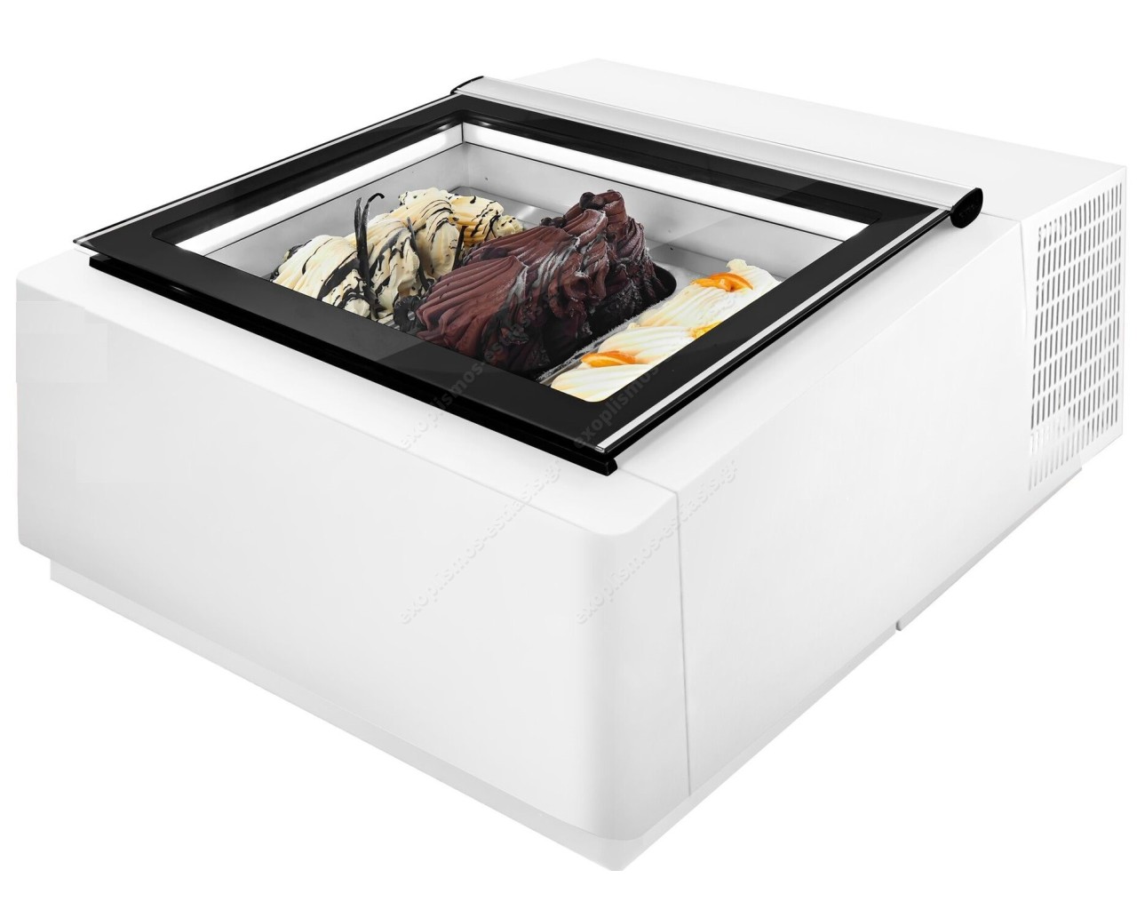 Το συμπαγές της μέγεθος την καθιστά τέλεια για πάγκο, χωρίς να πιάνει πολύ χώρο, ενώ το εύκολο άνοιγμα επιτρέπει γρήγορο και άνετο σερβίρισμα στις ώρες αιχμής. Μια αξιόπιστη και εντυπωσιακή λύση για επαγγελματίες που θέλουν να σερβίρουν παγωτό με στυλ και αποτελεσματικότητα.