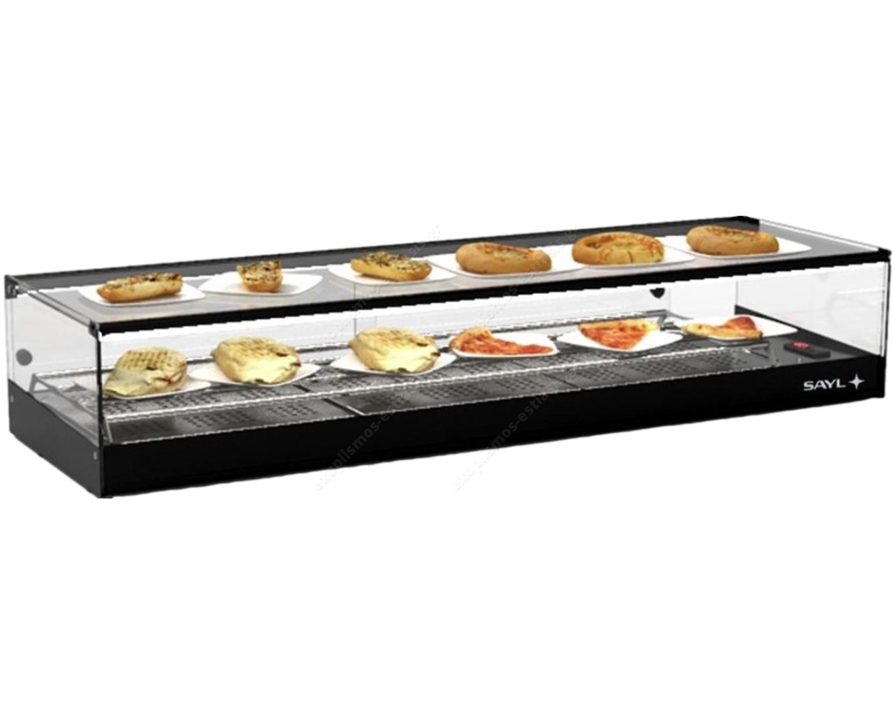 Βιτρίνα θερμαινόμενη 119εκ SAYL. Είναι μια επιτραπέζια βιτρίνα θερμαινόμενη υψηλής αισθητικής και απόδοσης, σχεδιασμένη για την παρουσίαση και διατήρηση ζεστών φαγητών σε ιδανική θερμοκρασία.
